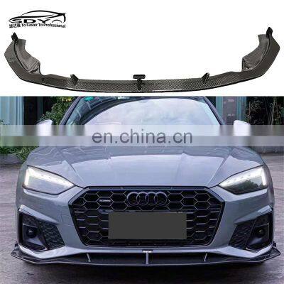 Products DescriptionKey attributesProduct IDA41-12Car MakeFor Audi A5 Sline S5 B9.5Year2021-2023PositionFront BumperMaterialCarbon FiberSize181*11*56CMProcessVaccum Bagging/Hand LayerQualityHigh-QualityPlace of OriginGuangzhou, GuangdongCustomized demandSupport customized requirementsODM/OEMAvailableProduct photos and installation effectsCompany Profile Guangzhou fast Daya auto supplies trading Co., LTD. Its factory was established in 2014, located in Guangzhou Guangyuan auto parts City Guangzhou Guangyuan East Road No. 1881. After years of development, the company has owned upstream and downstream channels including factories, warehousing, logistics, sales, and about 100 employees. Its products are exported to Southeast Asia, South Asia, the Middle East, South America, Europe and other countries, well received by customers. We not only provide finished product sales, but also provide custom production, design services, packaging customization. We hope to establish long-term and stable cooperative relations with our customers.Our AdvantagesProduct packagingFAQQ: What are your payment methods?A:All the accepted methods by , this includes T/T,D/P D/A,Credit Card,PayPal,Cash.Q: When will my order ship after purchase and how long does it take?A:Generally , shipping by express and by air will take about 6 -10 days ;shipping by sea need about 30days.Q: What is your sample policy?A: We can supply the sample if we have ready parts in stock, but pls show me your company's information.Q: What is your terms of packing?A: Usually we will package the goods by carton and wooden support.It will be allowed to sending oversea.We will also pack according to your requirements.Q: How can we guarantee quality?A: Shipment inspection quality, support video image verification.Q: How can I choose it correctly?A: Please provide your details, such as car model type/year,product names, colour, and so on,if you have any other problems,it doesn't matter,connect with us and we will do our best to help you to choose the best one which is the most appropriate for you.