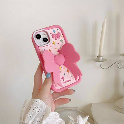 Cartoon Style Butterfly Knot For Phone Mobile Cover Cases in Soft Girly Mobile Case Covers With Holder 11 12 Pro 14 15 Pro Max