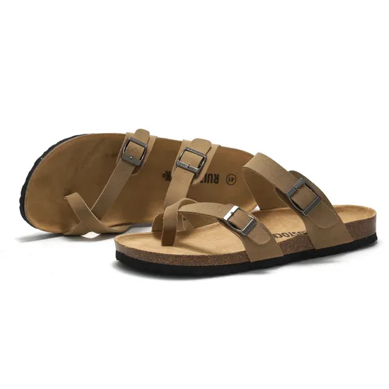 | Product Name | Wholesale summer unisex vintage casual sandals PU leather men slides beach cork slippers with buckle |