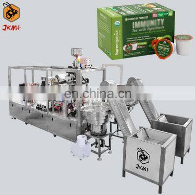 High Speed Automatic Multi-Lane Coffee Capsule Packing Machine 4 Lane Coffee Capsule Filling Sealing MachineProducts DescriptionApplication>What can this machine pack?Rotary Type Coffee Capsule Filling Sealing Machine is suitable for filling various types of coffee capsules ( such as nesspresso / k-cup / lavazza). Can automatically complete the capsule cup's automatic drop cup, automatic filling, automatic suction film, sealing, automatic cup and other functions. The machine uses the Japanese ohm long programmable logic controller, pneumatic control element, intelligent digital display temperature control system, with the features of high sealing strength, good sealing performance, low failure rate and small floor space.Machine InformationCoffee Capsule Filling Sealing MachineModelJK-2CCJK-4CCJK-8CCPacking speed1500~1800Pieces/hour2800~3000Pieces/hour6000~6400Pieces/hourFilling volume1~20gMachine power220V/380V,50HZ,4~10KW220V, 50HZMachine size(L*W*H)2800*500*17003000*800*17004000*800*1700Machine weight400KG600KG800KGMain Features1. The whole machine with advanced design, reasonable structure, reliable performance.2. Automatic operation, the production rate can be adjustable, simple and safe operation, increase productivity, reduce labor costs.3. Photocell eye calibration, ensure the accuracy of filling.4. Twice of sealing, the pressure of sealing can be adjustable. Can be sealed according to customer' requirements for easy to tear and not easy to tear, which embodies a higher level of human design.5. The sealing edges are smooth and flawless.6. The machine can be customized according to customer' needs and add other auxiliary functions.Machine Working ProcessAutomatic Capusle Feeding DeviceFully automatic vibration feeding device, fast conveying, the contact surface is made of food-grade 304 stainless steel, safe and hygienic.Nitrogen Flushing DeviceNitrogen flushes the capsules to keep them clean and refills after the back end is filled with ground coffee. Ensure product quality.Coffee Powder Measuring Filling DeviceHigh-precision 4-head powder filling machine with weighing accuracy of 99%. The front end is equipped with an ultraviolet disinfection device, and the rear end is equipped with a dust removal device to ensure a good packaging effect.Capsule Aluminum Film Cutting DeviceSpecially used for linear multi-column coffee capsule machine, which has more advantages than traditional types. It is more convenient to use, and the size of the aluminum film can be adjusted according to the size of the capsule, which can be used for a variety of capsules.Capsule Film Heat Sealing DeviceThe capsule heat sealing device controlled by the intelligent temperature control system can set the temperature according to the material of the film, and perfectly complete the sealing process of the capsule.Finished Product Automatic Output DeviceAfter the capsule is sealed, the capsule is automatically taken out by the suction cup device and placed horizontally on the conveyor belt, and the back end can be replaced with a link packaging device, such as a cartoning machine.Why Choose UsJIKE BEE MACHINERY has a professional team to provide customers with various packaging solutions. Fully understanding the needs of customers,engineers design the most suitable solution. We have our own processing and assembly workshop and quality inspection and debugging process to ensure the quality of the machine. After acceptance by the customer, they are packed in international standard wooden cases and shipped.Our technical team has carefully filmed more than 100 installation and commissioning videos of various accessories and complete machines, providing video training guarantee services for the equipment permanently.We will package the machine's instruction manual and a USB flash drive with machine operation videos together with the machine.Ensure that you can use the machine as soonas you receive it. If you have something you don't understand, our after-sales team will also help you answer in time.Company ProfileFoshan Jike Bee Automation Equipment Co., Ltd. is a manufacturer of automatic packaging equipment.We are a production-oriented enterprises focused on product innovation, factory direct sales and perfect after-sales service in one.The automatic packaging equipment for granule, powder, liquid and sauce produced by the Jason company is at the advanced level of the industry,it can be customized production automatic material packaging line for all kinds of products .Mainly applicable to: food, hardware, drugs, daily chemicals, pesticides, fruits and vegetables, cosmetics, other industries.The company has its own patent and product technical certification, which can bring customers high quality equipment and worthy of customer trust.FAQQ1:Do you have manual or operation video for us to know more about the machine? Yes, not only manual or operation video, 3D drawing also available to make as per your design,also the video we can make of testing the material from our packaging machine if your packing goods easier for us to find from our local market. Q2:How can I trust you for the first time business ?Please note our above business license and certificate. And if you don't trust us, then we can use trade assurance service, guarantee your money, and guarantee your machine's on-time delivery and machine quality.Q3:Is engineer available to serve oversea?Yes, but the travel fee is paid by you. So actually to save your cost, we will send you a video of full details machine installation and assist you till the end.Q4:How can we make sure about the machine quality after we put the order?Before delivery, we will send you the pictures and videos for you to check the quality, and also you can arrange for quality checking by yourself or by your contacts in China.Q5:Will you provides the door to door service?Yes. Please offer us your final destination, we will check with our agent to see if it available, and most of the area is 