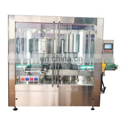 This machine is the introduction of foreign advanced technology design and manufacture of rinsing,filling,capping three in one machine. The filling valve is introduced from German company technology manufacturing, high precision manufacturing, filling level is accurate, small fluid loss, especially for high-speed filling; screw capping system is introduced from the French company technology.