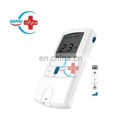 HC-B105 Popular Laboratory Coagulometer PT INR Machine Portable Handheld Blood Coagulation Analyzer Features for HC-B105 Popular Laboratory Coagulometer PT INR Machine Portable Handheld Blood Coagulation Analyzer : Type:Portable INR coagulation testertemperature range:+15~18*C to +32*cRelative humidity:10to 85% (under non-liquefied conditions)Maximum altitude:4300 mPlacement conditions:Place on a level, vibration-free surface, or keep it roughly horizontal by handMeasuring range:%Q: 120-5 SEC: 9.6-96 INR: 0.8-8.0Memory memory:100 test results (including time and date)Communication Interface:Infrared, LEDIRED Class 1Battery specifications:4x1.5 volt alkaline battery, AAAA set of batteries:Internal medicine can be tested about 60 times a yearPower off automatically:After 3 minutessize:138x78 x 28 mmweight:127g (without battery) Advantage:Hand-held instrument, small and light, easy to useSample loading outside the machine (top/side)Using a drop of capillary whole blood and venous whole blood to make the patient suffer from venipunctureYou can control the efficacy of warfarin in minutesTest strip single channel integrated quality control to ensure the accuracy of the resultsAdd samples on the side or top of the test strip to reduce the error rateTest strips stored at room temperatureStandard battery (4 AAA batteries) Picture for HC-B105 Popular Laboratory Coagulometer PT INR Machine Portable Handheld Blood Coagulation Analyzer : Packaging & Shipping Our Services Company Information FAQ1. How to place order of HC-B105 Popular Laboratory Coagulometer PT INR Machine Portable Handheld Blood Coagulation Analyzer ?A: Firstly we confirm product details and then send the Proforma Invoice, You make payment to us through Alibaba Trade Assurance or T/T, Western Union or MoneyGram, after we confirm your payment then ship the product to you once finished production. 2. For HC-B105 Popular Laboratory Coagulometer PT INR Machine Portable Handheld Blood Coagulation Analyzer product,What’s the minimum order quantity (MOQ)?A: For disposable material,We have our own MOQ,For ourHC-B105 Popular Laboratory Coagulometer PT INR Machine portable handheld blood coagulation analyzer , our MOQ:1pc, 3. What is your warranty?A: For most products the warranty is for 12 months, some products we provide 18 months warranty. For HC-B105 Popular Laboratory Coagulometer PT INR Machine Portable Handheld Blood Coagulation Analyzer , we provide 12 months warranty.4. What’s your delivery time?A: Generally it is 5 working days if goods in stock. within 10 working days if the goods need production, And also the delivery time depands on quantity.For HC-B105 Popular Laboratory Coagulometer PT INR Machine Portable Handheld Blood Coagulation Analyzer , the delivery time is 10 working days.5. How to ship the product?A: The shipping way normally depand on your quantity,total CBM and weight. We have our own shipping company to provide best shipping cost and efficient way.