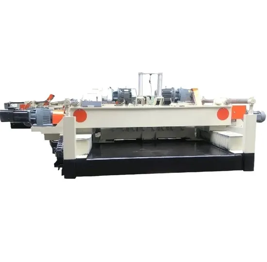 The spindleless rotary peeling machine is used to process log into continuous veneer strips for plywood and wood based panel.