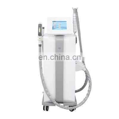 3 in 1 OPT IPL RF Nd Yag Permanent Laser Hair Removal and Skin Rejuvenation Machine Theory E-light takes strong pulse IPL and bipolar radio frequency electromagnetic wave with special width-spectrum, selectively acts on target texture, to do skin rejuvenation, freckle removal, hair removal, wrinkle removal effectively. On treatment if 5 to 10 times than traditional photon therapy. Safety of SHR Any people who are eligible in using and maintaining can safely use this machine . Any operators and his/her assistants must know well the following safe notices and make sure both the operator and the customers are safe during the treatments . Light energy performance1. Single pulse energy: Jm ≥ 2000mj2. Laser output instability: S ≤ ± 15%3. Laser output energy reproducibility: Rj <10%4. Output energy and energy display error: ≤ ± 20%5. Surgery spot diameter: 1-4nm range continuously adjustable6. Spot positioning focusing accuracy: the error ≤ ± 0.5mm7. Multi-joint light guide arm adjustment range: ≥ 45 ° in the horizontal plane, the vertical height from the ground between 60cm - 80cm. Technical ParameterIPL systemHandle mode Filters handle, sapphire handle and high power handle Spot size: 8*40mm2 or 15*50mm2 Energy density: 1-20J/cm2 Pulse frequency: 1~4S, adjustablePulse number:1~6, adjustablePulse space:05~99ms, adjustableSub-pulse width:0.1~9.9ms, adjustableHandle cooling temperature:-10°C~0°C, adjustablePower:2000W (Elight ) ; 1000W (Laser) Lamp longevity:200,000shots (IPL) 1,000,000shots(Laser)LanguageEnglish,Spanish,France .Italian ,German,ChineseRF systemRF frequency10MHZEnergy density:1-20J/cm2Output mode:BipolarEnergy2~300J, adjustableHandle cooling temperature:-10°C~0°C, adjustableCooling system:Air + Water + Semi-conductor coolingScreen8.4 inch true color touch screenPower supply110/240V+10% 60/50HzSize75*48*120cmWeight69kgPicosecond laser Laser wavelength1064nm/755nm/532nm/1320nmPulse Energy2000MJWidth of pulse10-20nsFrequency1~10HzSpot Size2~10mmCooling system Radiator, air+water-cooledLight source220V/110v 50Hz/60Hz Scope of application 1)mild, stubborn chloasma treatment2) deep pigmentary lesions, such as Ota, blue mole3)superficial pigmented nevus, such as freckles, age spots and so on4)eliminate all kinds of color tattoos and tattoo, pattern eyeliner and so on5)shrink large pores, remove small telangiectasia, effectively improve the auxiliary rejuvenation function such as acne RFQ 1. Do you have any warranty?Yes, we have. 12 months warranty. 2. How is your after-sale service? We have a professional technology supporting team for your timely services. You can get the help you need in time by telephone, webcam, online chat (Google talk, Facebook, Skype). Please contact us once the machine has any problem. Best service will be offered. 3. What certification do you have? All of our machines have the CE certification which ensures the quality and safety. Our machines are under strict quality management to ensure good quality. Because we fully understand that it will be a great trouble if machine have any problem during working at oversea. 4. Will you teach how to use the machine? Yes, we can provide a complete user manual and usage video for instruction and application. And 24/7 online consultant service ensure you whatever problem and whenever you meet, you can solve easily. It is easy to operate by anyone with the instructions. 5. Why should you choose us?Powerful factory, giving the competitive price and best technology support 7-years' experience in producing beauty machine, strong R&D 1 years-warranty and 8/24 online after-sale service CE Certification, the key for you to legally use and sell the machine Diversity of customized service, strong OEM & ODM capability available