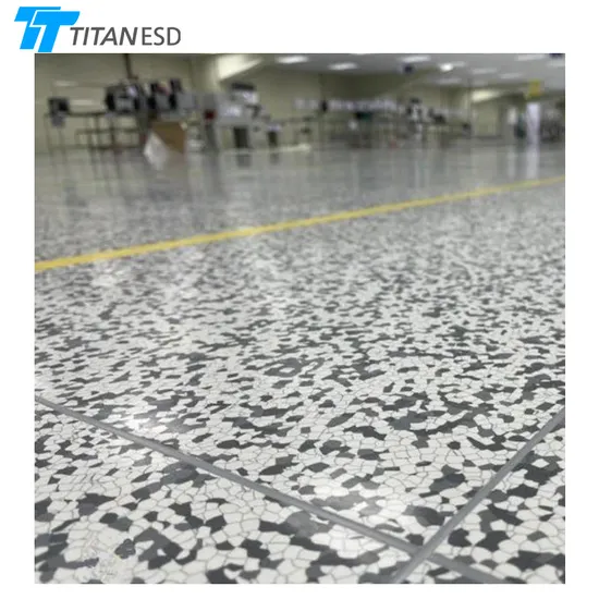 ESD vinyl tiles is a homogeneous form flooring, which utilizes an conductive network electrostatically and formed by the interface of plastic particles. It ensures permanent conductive properties of ESD flooring. The main materials of ESD flooring tile are polyvinyl chloride resin, conductive materials, stabilizers, plasticizers, pigments and other auxiliary materials. The pattern of a ESD flooring tile resembles a marble pattern, it has a good decorative effect.