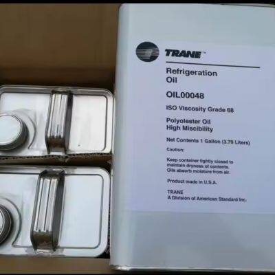 Trane 48 refrigeration oil, Trane number: OIL 00048, 1 tank/barrel, used for Trane R134a unit, main models include RTHC, RTHD, RTAC, RTAD, RTWD and other system screw units. Trane oil filters ELM01405, FLR07744, FLR01353