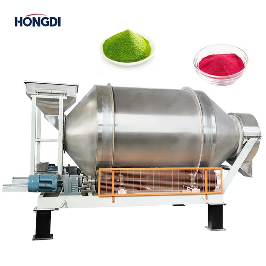 The square hopper inlet enables the material to enter the drum for even distribution, convenience and efficiency, and the drum rotates to achieve material mixing.