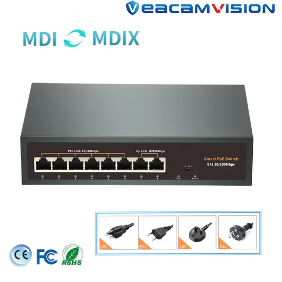 Product Description Product Description: Introducing the 6*10/100mbps POE Switch by Veacam Electronics Co., Ltd. This high-performance switch is designed to meet the reading habits of English-speaking natives, providing seamless connectivity for various devices.