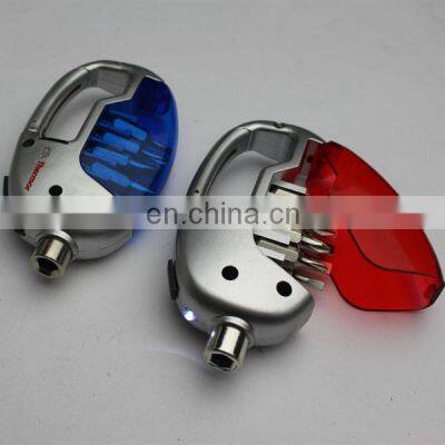 led tool set with torch picture Product Description Detail description of tool set1) With led torch light2) With 8 screwdriver in 13) With plastic carabiner clip Detail specificationof tool setModel no.PT0608-9Size10.1x5.7x1.7cmMaterial rCR-V or carbon steel, plastic Unit weight89.4gColorAs per PantoneBattery3 xAG13CertificationCE, RoHSWay of logo printingSilk sn, stamp printing or heat transfer printing Detail pictures of tool set Packaging & Shipping 1pc/polybag, 24pcs/inner, 144pcs/ctnCtn size: 38x34x42cmG.W./N.W.:13.0/11.5kgs Our Services 1) Your inquiry will be replied within 12 hours.2) Well-trained & experienced sales can reply your inquiries in English.3) Working time: 8:30 am ~6:00 pm, Monday to Friday (UTC+8).During working time, E-mail will be replied to you within 2 hours4) OEM & ODM projects are highly welcomed. We have strong R&D team.5) The order will be produced exactly according to order details and proofed samples. Our QC will submit inspection report before shipment.6) Your business relationship with us will be confidential to any third party.7) Good after-sale service. Company InformationNingbo Pinbo Plastic Manufacturer is one of most competitive supplier specializes in promotional gift items, was established in 2006. With more than 160 persons and many modern facilities, currently, we have already exported to America, Europe, Japan, Mexico and 20 other countries and regions. Your OEM and ODM product are welcome, our 6 experienced engineers and designers can work on your ideas. We regards “high quality, competitive price, on-time delivery, and fast and effective communications” as our tenet, hope to cooperate with more customers for mutual development and benefits. FAQOur partners