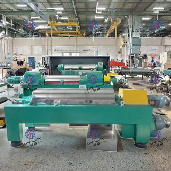 Bowl rotating speed ,rotative speed difference,between,spiral pusher and bowl depth of liquid pool. In the production of surimi, the shredded fish fillets will go through two to three cleaning processes. In this process, impurities such as blood and fat are washed away. The washing water is usually roughly filtered through a rotating sieve. In traditional surimi production, the dehydration of fish meat is done by a screw press. The meat is then treated with antifreeze and deep-frozen. This surimi production method has many disadvantages: Different washing stages and screw pressing process lead to a large amount of fish fiber loss 1.Need a lot of cleaning water 2.Huge space requirement 3.The raw material is easy to be infected with bacteria The Shenzhou decanter centrifuge can solve all the above problems. In the production of surimi, the decanter centrifuge can not only recover the fish meat from the washing water, but also replace the screw press. In this way, the output rate of the surimi production process can be significantly improved. 1, Helical pusher adopts the special antifriction method: sprinkle hardness alloy or inlay hardness alloy anti-friction disk; anti -corrosion stainless steel is employed for the material of the main parts of drum, so that assure the durability and longer using lifetime of the equipment.