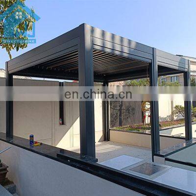 Product NameModern design bioclimatic motorized aluminium louvered pergolaControl wayMotorized with remote controlFunctionWaterproof ,sunshade,windproof ,snowproof, house space extendingApplicationVilla,balcony ,garden ,backyard ,roof ,restaurant,decking ,swimming pool and so onWind Resistant180-220 KM/HSnow Loading60-100cmSizePopular standard size:3x3x2.5、4x3x2.5、5x3x2.5、6x3x2.5 or can be customizedOther related materialsSide screen/curtains, side shutter ,LED lights,heater ,fans,glass doors,outdoor furnitureInstallationWe will provide very detailed drawing and video for the installationOthers1.MOQ:1 set, we welcome small order 2.Production: we are factory , we can provide 10-15days fast production time 3.Warrenty:10 years4.Color:White, Grey, Black, or customized colors availableFAQQ1. Is this pvc folding pergola easy to install?A: We have the assembly manual instruction specifically made according to your project site. It's a DIY product designed to be easily assembled and we can provide installation video.Q2. How long is your products' warranty?A: All our products have 10 years warranty.Q3:How to guarantee the quality of the products?A:We have our own QC team to control the products quality for all our clients'orders before loading.Q4. How can i get a price of needed pvc folding pergola?A: Please give the exactly size and quantity of your required pvc folding pergola. We can give you a detail quotation and free design solution based on your requirements.Q5.I am a small wholesaler, do you accept small order?A: It's no problem is you are a small wholesaler, we would like to grow up with you together and our MOQ is 1 set.Q6. Is my first time to export from China, what if i have no experience?A: Don t worry, we have very professional sale will guide for and we can provide one stop solution including deliver the door to your home address with customs.Q7. What kind of payment terms would you accept?A: We usually accept T/T, L/C, Western Union, etc. If you prefer other payments terms, please feel free to discuss with us.Q8. What if i meet the problem after installing and using this pvc folding pergola?A: As our principle is our business had been built on hoes & backed by customer service.we are verified supplier in Alibaba. com and our can provide 10 years warranty, so if you meet any problem for using this pvc folding pergola,welcome to contact.
