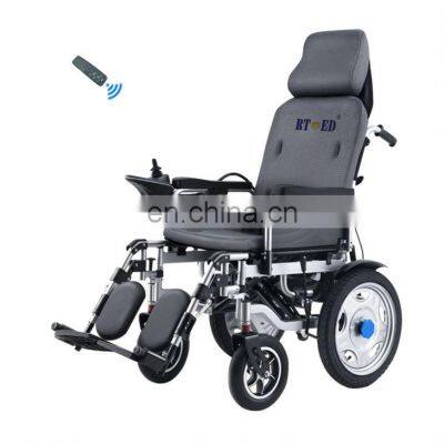 Haidike Folding Electric WheelchairProduct Description Electric wheelchair is an artificial intelligence high-tech electric walking tool, and also one of the high-end equipment of intelligent health care life. On the basis of the traditional manual wheelchair, the electric wheelchair is added with high-performance power drive device, intelligent control device and other accessories. According to the principle of engineering mechanics, it can be remotely controlled, foldable, sitting and lying. It has the advantages of shock absorption effect, and brings more comfortable and convenient action experience to users. Product Overviews Front wheel size10 inchesRear wheel size16 inchesDimensions1180 * 630 * 1360Safe load100kgFrame materialcarbon steelCushion colorBlackBatteryStandardNet weight47kgMaximum speed6km / hTheoretical Journey15km Features of luxury electric wheelchair:1, intelligent remote control, easy to operateThe simple and easy-to-use intelligent controller is designed for beginners. The handle can be rotated 360° to control the direction. The reasonable layout of keys is easy to understand. It can be controlled by one finger, and the operation is simple.2, one button folding for easy storageThe length, width and height of the electric wheelchair are 1180 × 630 × 1360mm. After folding, the overall dimension is 78 × 34 × 73mm, one key folding, lightweight, no land occupation, easy to travel and store.3, the wheelchair designed by golden ratio is safer and more stableThe wheelbase of frame and wheel is reasonably designed according to the golden ratio, forming the golden triangle, reducing the center of gravity, driving safety and stable operation.4, Wheelchair can sit and lie, and switch freelyThe electric wheelchair car has been upgraded, with 180° full angle adjustable armchair. Self adjustable, remote control, convenient operation. You can adjust the angle at will to achieve the most comfortable posture.5, It has two motors and is very powerfulThe electric wheelchair adopts 250W motor and pure copper movement, with long service life, high performance, quiet energy saving, environmental protection and health. Double motor, strong power, suitable for slope road, dirt road, lawn, plank road and other uneven road.6, EABS brake, smooth brakingThe electric wheelchair is equipped with EABS safety braking system, which can be stopped by releasing the control handle. Moreover, it can stop on the slope without sliding, which is efficient, stable and safer.7, shock absorption design, the cushioning effect is very lightThe rear wheel of the electric wheelchair is equipped with a shock absorber spring on the left and right respectively. It can be driven on bumpy road with flexible buffer and comfortable stability.8, with anti dumping device, safe up and down slopeAnti roll wheel is added at the rear of the electric wheelchair, which can effectively avoid the wheelchair turning back on the way up the slope. At the same time, the seat belt can effectively avoid the danger of downhill and forward tilt.9, The battery can last for a long timeThe electric wheelchair can choose lithium battery or lead-acid battery. The capacity of the two batteries is different, and the driving range is different. In contrast, lithium battery has large capacity, light weight and long range. The battery with large capacitance has low charging frequency and is not prone to power loss. You can choose the right battery according to your own demand for battery life and charging frequency.10, electric mode and manual modeThis electric wheelchair has electric mode and manual mode, which can be adjusted by the button in the center of the rear wheel. Pull the button to control the trip electrically, and press the button to push the wheelchair manually. The manual mode is also suitable for rehabilitation exercise. Packaging & Shipping Port: Qingdao/ShanghaiLead Time:Quantity(Units)1 - 1000>1000Est. Time(days)20To be negotiated FAQ