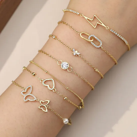 Fashion Fine Jewelry 925 Sterling Silver Geometric Lightning Paperclip Insect Bee Heart Butterfly Charms Bracelets for Women Girls