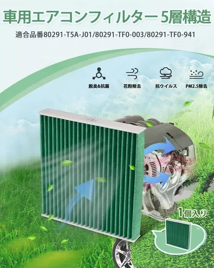 | AUTO SPEC Air conditioner filter for Honda Fit Fit GR GE GKGP series Bezel RU series Freed GB series Car air conditioner filter 5-layer structure with activated carbon Car air conditioner filter Fit Shuttle Insight Shuttle Step Wagon RP1-5 CR-V and other car models PM2.5 removal Anti Virus, pollen removal, exhaust gas (Green 1 pc.) |
