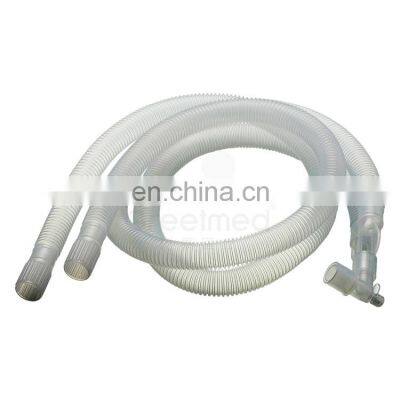 GREETMED breathing circuit disposable medical corrugated tube anesthesia ventilator breathing circuitProduct Descriptionbreathing circuit function:connected with respiratory system. perform suction of the body fluid when perform operation on thoracic cavity or abdominal cavitybreathing circuit specification:MaterialPP and PVC.Large lumen resistes clogging and the transparency allows clear visualization Two kinds of stylewith vent and without vent, With connecting tubeSize1/4″*1.8m,1/4″*3.6m ,3/16″*1.8m, 3/16″*3.6mStore claimstore in dark, dry and clean conditionsExpiry date5yearsbreathing circuit form of packing:1 pcs packing in blister packing, 50pcs packing in one cartonbreathing circuit size of packing:Export carton:510x330x410mmRelated ProductsCompany InformationOUR ADVANTAGESExperience· More than 15 years experience in medical instruments industry· Products sell to more than one hundred countries all over the world· An esteemed & reliable manufacturer in chinaServices· One-stop shopping of medical instruments products· Less than 45 days delivery· 24 hours online service· We can provide our technical documents for your product registrationProfessionalism· Having a great understanding of market trends· Systematic product knowledge training system· Leading development oriented manufacturer· Help customers build factorySafety· All products certified by CE/ISO13485· Professional QC teamTrade ShowsCertificationsFAQ1.Can I get some samples?We are honored to send you our samples,but the express fee need to paid by your esteemed company2.How about the delivery time?1).For Samply order will be prepared within 5 days.2).For bulk order.normally,it needs 20-30 days,it's based on you QTY.3.Can you do custom-made?OEM,ODM welcomed.1).Silk print your logo on the product.2).Customized colorbox.3).Design and produce based on your idea and draft.4.How about the payment?1).Amount less than $1000.You can pay for the order by Paypal,western Union.2).Amount more than $1000.You can pay for the order by T/T,LC.We support Trade Assurance - A free service that protects your orders from payment to delivery,it can make your funds safer.5.How about the shipping?1).For sample order,it can sent by express company like UPS,Fedex,TNT ect.We have strong cooperation with them and if you have express collected account,you will no need to pay us.2).For bulk order,it would sent by sea.We have our cooperation forwarder and you also can use your OWN forwarder.6.How about your service?1).Any Inquiries will be replied within 24 hours.2).Professional manufacturer,quality issue,competitive price.3).All products will be strictly quality checked and well-packed before shipping.4).If you order FCL and the broken more than 2%,we will replace you at the next time.5).We can assist you to apply the relevant certificates