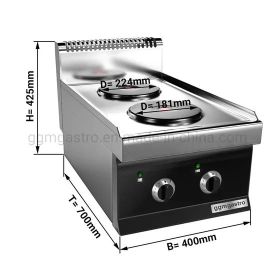 Temperature: from 50ºC ~ 400ºC 2 round plates Plate diameter rear: 224 mm Plate diameter front: 181 mm 6 power levels Each plate is individually adjustable Product Parameters