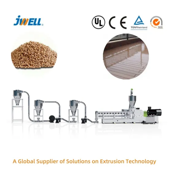 The unit is a complete set of parallel twin screw extruder and correponding pelletizing auxiliary machine are mainly used for granulation of wood powder or filler with raw material like PVC, PP and PE. The auxiliary machine adopts wind-blowing collecting and cooling system, and has the characteristics of high automation and great product efficiency. 1. Gearbox: We use Chinese good brand or oversea famous brand. High speed, lower noise, longer working life. 2. Screw and barrel: High quality and anti-wear segment. 3. Control: Whole line use Siemens PLC control. 4. Feeding system: We use weight sytem and mixing system on line. Accurately measure the weight of each material and thoroughly mixed. Product Parameters