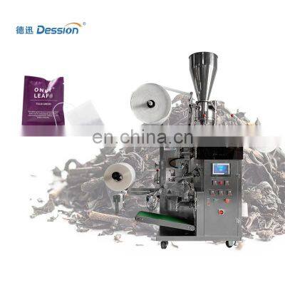 full automatic double tea bag packing machine ginger tea packaging machine priceMachine IntroductionDession multi-functional tea packaging machine suitable for all kinds of teabag packaging.Such as bulk tea, herbal tea, health tea, flower tea, tea powder, coffee powder and other internal and external bags are disposable packaging.One machine for multiple purposes. Various packaging types are available upon request. Including tea sachet, single chamber tea bag with tag, double chamber tea bag with outer envelope.Machine ParametersModel NO.DS-T-C18MeasuringVolume measuring cupFilling Range3~15 ml(g)Packing Speed40~60 bags/minInner Bag SizeL:50-70mm,W:40-80mmOuter Bag SizeL:70-120mm,W:60-90mmTag SizeL:20-24mm,W:40-55mmThread Length155mmPower220V,50Hz,1.9KWMachine size1750*740*1950 mmMachine weight550KGMachine Characteristic1.The section where the material contact is stainless steel as the body of machine is optional for complete orpartial stainless steel and all out equipments have passed the CE Standard.2.High-sensitivity photoelectric color tracing and digital input of cutting position get more accuracy.3.Embedded sealing , enhanced structure of heat sealing intelligent temperature controller and excellent heat balance make all kinds of packaging materials possible with good performance, low noise, clear cutting pattern and strong sealability.4.Packaging speed and length of bags can be set to some extent without further adjustment and parts changing. Packaging speed and length of bags can be set to some extent without further adjustment and parts changing.Machine DeatilsThe machine is easy to operate and all settings can be controlled on the touch screen.Simply set the parameters on the screen, equip the wrapping film and install it on the machine, and the machine can be started. Put the product into the hopper, the machine will automatically pull the film, make the bag, seal, and finally cut the bag. You can get a beautiful tea bag.Machine Control CenterHuman machine Interactive interface. Easy to control and adjust. The language is customized according to customer specific requirement.Independent temperature control device for each part of the machine, easy to adjust.Measuring Cup Measuring DeviceAdopts the volumetric cup. It can be widely applied to the little granule.Not only for crushed tea.But also the coffee powder.The accurate can reach at ± 0.1.Tag and Thread Making DeviceLabels of the required size are automatically made and wired on the tea bags. If not needed, it can be turned off manually.Inner Bag Making DeviceThe corresponding bag maker can be replaced according to the size requirements.After the inner bag is made, the robot automatically picks up the finished inner bag tea bag and puts it into the outer bag device.Outer Bag Making DeviceThe whole machine adopts 3-sides heating sealing.The temperture can be easily adjusted based on different kinds of packing materials.Machine Packaging Effect DisplayThe inner and outer bags are packaged with three-side sealing. It can be equipped with nitrogen filling device and date coding device according to requirements.Why Choose UsVR1. Professional and Strong TeamDession has a professional team that can provide customers with various packaging solutions. After fully understanding the customer's needs, we provide the most suitable packaging solution to the customer. Then start the production of the machine. We have a strong production and processing capacity, from the customized processing of accessories to the assembly and debugging ofthe machine. Finally, it is packaged and shipped, and it only takes a week to complete.2. Timely and effective after-sales serviceChoosing us is not only buying a machine, but also our professional and timely service. 1. When the machine is delivered, we will attach a video of the installation and operation of the machine, so that you can use the machine quickly. 2. All electrical appliances of our machines have a one-year warranty, and we will replace them if they fail. 3. When your machine fails, we will have professional engineers to provide professional online after-sales service to help you solve the problem. 4. If the problem cannot be solved online, we will arrange an engineer to repair it on site within a week.Buyer FeedbackWe have 8 years of experience in foreign trade and export, and now our customers have spread to 90 countries all over the world. With our high-quality machines and professional services, we have won unanimous praise from our customers.Company ProfileDession a leading manufacturer of Packaging machine and supporting facilities, which has successfully developed more than 80 kinds of packaging machines. Dession Packaging Machine has widely applied for different fields throughout the world, such as food/ industrial food, medicines, hotel supplies, disposable goods, rubber goods, daily appliances, hardware fittings, sporting goods, toys etc. Dession has more than 8000 square meters of production plants, 5 production workshops and a parts processing workshop, including small vertical machine production workshops, vertical machine production workshops, pillow machine production workshops, cartoning machine production workshop and filling machine production workshop.FAQQ1:Do you have manual or operation video for us to know more about the machine? Yes, not only manual or operation video, 3D drawing also available to make as per your design,also the video we can make of testing the material from our packaging machine if your packing goods easier for us to find from our local market. Q2:How can I trust you for the first time business ?Please note our above business license and certificate. And if you don't trust us, then we can use Alibaba trade assurance service, guarantee your money, and guarantee your machine's on-time delivery and machine quality.Q3:Is engineer available to serve oversea?Yes, but the travel fee is paid by you. So actually to save your cost, we will send you a video 