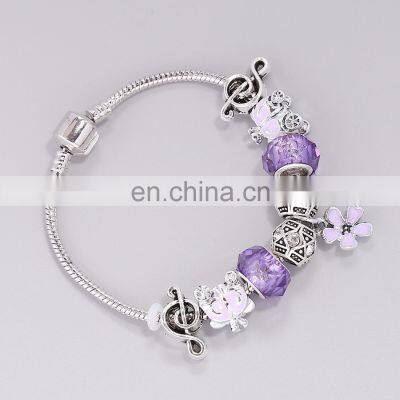 Factory Direct Cheap Vintage Jewelry Ornament Women Sterling Silver Plated Lucky Bracelets With Purple Zircon