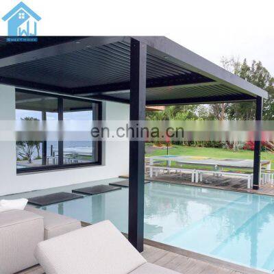 Product DescriptionOur this aluminum pergola is 100% water proof with internal gutter .We can do electric and manual control.The post size of our this aluminum pergola is 150x150x3mm which is very strong to hold the top louver roof system .We can custom any sizes for the aluminum pergola and you can choose motorized and manual control way.As we have our own color cutsomized work shop , we can custom any colors base on RAL color card .For the other accessories like side curtains/blind , LED lights ,heater ,wind/rain sensor , fan and so on , we cal also provide. And we can provide very detailed installation videos, so don't worry about the installation .Welcome to contact and inquiry .Product Name:Aluminium Garden PergolaFramework Main Beam:Extruded from 6063 Solid and Robust Aluminum ConstructionRianfall intensity :0.04-0.05L/S/M2Snow Load:UP to 120kg/m2Win Resistance:UP to 120km/h for closed bladesWidth Range:2.5m - 13.5mElectric Motor's Voltage:110V Or 230VRemote Control:1 Channel or 5 ChannelGutter:Complete with Gutter and Rain Spout for Inbuilt PVC DownpipeLouvres Blade Size:150mm /200mm/ 265mm Aerofoil Type Available, Waterproof Eeffictive DesignPivot Bolt:Highly Durable Aluminum with PP Blade End CapsOther Componentries:Heavy-duty internal fittings, Plastic bush, SS Grade Stainless Steel ScrewsTypical Finishes:Durable Powdercoated for Exterior ApplicationColors Options:We have our own color customized factory , we can custom any colors for youMotor Certification:TUV,CE,SGSHow the water come out :Our aluminum pergola with internal gutter system , the rain/water will come out from the bottom of post,like below picture .ProjectFactory and Package5 Stars review :FAQQ1:How to guarantee the quality of the products?We have our own QC team to control the products quality for all our clients'orders before loading.Q2:How long does it take to install a louvres roof /pergola?It depends on te skills,help and tools, usual 2-3 workers will finish the installation 50m 2 in one day.Q3:It is the louvre roof /pergola rain proof?Yes,the normal weather cnditions,even heavily rain,the roof /pergola will not let in rain.Q4:How does the rain sensor work?The control system normally programmed to close the louvres when rain is detected.Q5:Are louvres roof/pergola energy efficient?The adjustable louvres blade help to reduce heating and controlling the amountof direct sunlight.Q6:Can the louvres roof/pergola used next to the sea?All accessories in aluminium alloy,stainless steel and brass to avoid any rust and corrosion.Q7:How we do business?Take care of your prducts and serve your needs.Contact us by E-mail or by phone. Other Main Products