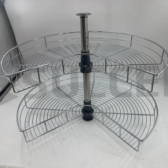 double layer half moon lazy susan is a 270° revolving basket for base cabinet.