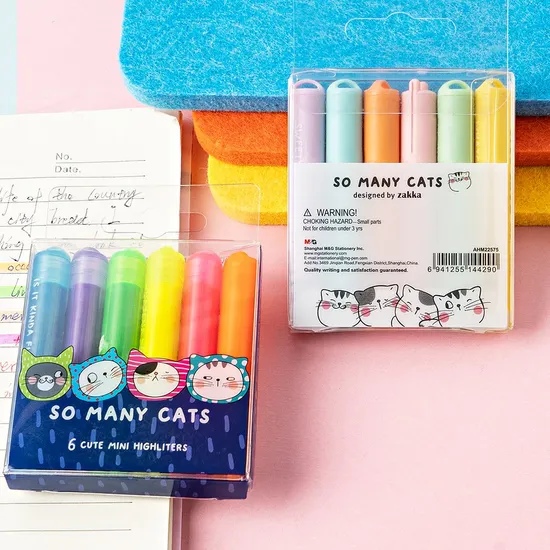 Main Features: 1.Mini hightlight for easy portability 2.Value pack of 6 fluorescent colors 3.Popular selling item in BTS season |
