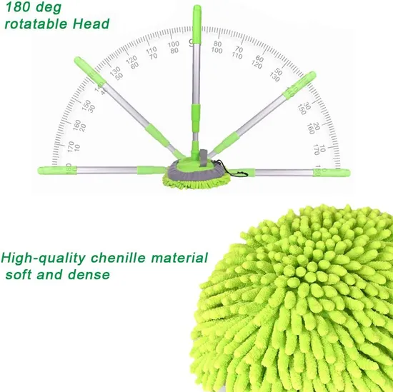 ABOUT THIS ITEM:[Ergonomic Design]:Car Wash Brush Is Designed With 180° Rotating pole, Car Cleaning Brush Makes It Easier And More Convenient For You To Clean The Roof Of Your Car.[Well Made]:Car Wash Kit Made Of Durable Plastic Handle And Very Soft Mop Head, This Is Durable Car Wash Mop, You Will Love To Wash Your Car[No Scratch]:Car Detailing Supplies Have Microfiber Chenille Mops With Lint-free Mop Heads That Won't Scratch Car Paint And Other Delicate Surfaces.[What You Get]:1x Durable Plastic long handle car wash mop, 2 x Urtal soft chenille microfiber mop heads Covers[Wide Usage]:Not only can you wash a car, Truck, SUV, motorcycle, but its awesome for windows, walls, outdoor sheds and your home accessoriesPRODUCT DETAILS: