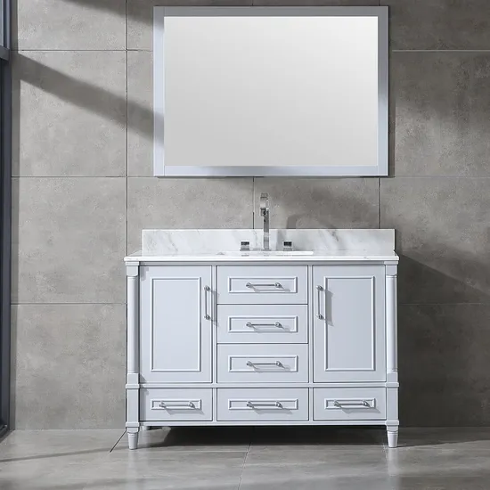Packaging Details: MIRROR, BASIN AND VANITY BASE PACKED SEPARATEDLY, WITH 6 SIDES 2CM THICKNESS FOAM AROUND THE GOODS, 7 LAYERS PAPER CARTON FOR VANITY, PLYWOOD CRATE FOR BASIN, 5 LAYERS PAPAER CARTON FOR MIRROR.
