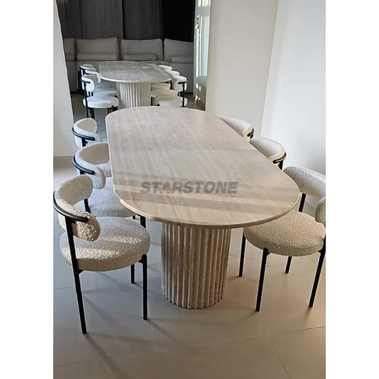Starstone Luxury Natural Travertine Oval Desktop Dining Table with Column Fluted Leg Product Description
