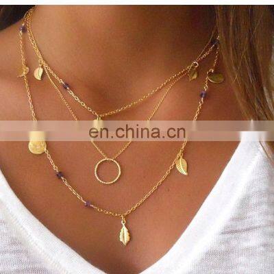 Silver Color chain leaves multi layer pendant necklace for women Collier femme fashion jewelry