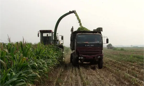 Working Mode: Cutting header conveyor roller and sawing plate harvest crops, and orderly delivery the crop stalk, leaf, and spike mixture into the feeding roller, the feeding roller clamping material into cutter head and throw the chopped material