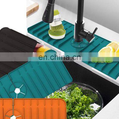 Related ProductProduct DescriptionUpgraded Silicone Mat: Newly upgraded silicone faucet mat, it is designed with drainage, it collects water and drips it to the sink. Removes water stains, does not collect water. 37 x 13.5 x 1.5 cm, the diameter of the middle hole is adjustable and fits the faucet tube within 2.5 inches. Tips: Please confirm the size before buyingSilicone Material: The silicone water pick up pad is made of food grade silicone, soft and reliable, better than other counter top drying mats that kind of cloth on the market.Easy to clean: just rinse with water or put it in the dishwasher, it dries faster and does not need to be cleaned or replaced frequently. There's no need to clean your sink counter top after each use of the kitchen faucet absorbent pads, so you can spend less time cleaning.Reusable and Durable: It is reusable and durable, each side is tightly wrapped, not easy to wear, more durable than other mats made of leather and microfiber. Rolls up or folds flat for easy storage.Wide Application: The kitchen counter mat easily fits around the base of your kitchen, bathroom, farmhouse, RV, or bathroom sink to keep you clean and dry. You can also put a cleaning brush, dish soap, sponge, dish soap and mouthwash cup on this mat, perfect sink accessories.Product DetailsProduct Name Faucet Sink MatMaterialSilica gelColorOrange, Black, Grey, GreenSize37 x 13.5 x 1.5 cmWeight200 gramsUnit Packing Size8 x 8 x 15 cmUnit Packing Weight 0.3 kgOEMAcceptedProduct ShowsCompany ProfileOur ServiceExpress Delivery by FedEx, DHL, TNT, UPS, EMS Shipment Weight1 - 45 kg45 - 200 kgor MoreMode of ShipmentBy CourierBy Courier / AirBy Air / SeaLead Time5 - 7 days5 - 7 days5 - 7 days30 days to Europe / USADoor to door delivery carrier includes: DHL, Fedex, UPS, TNT, EMS etc.A full range of sea and air logistics to provide you with the most convenientlogistics experience, rapid response to save your time.Payment TermsTrade AssurancePayPal / Secured PaymentWestern UnionBank TransferFor any amount< $ 5000For any amountFor any amountFrequently Asked QuestionsQ: Why choose us?• Lowest factory price with good quality• Low Minimum Order Quantity • Free sample to check quality• We also accept trade assurance order to protect buyerQ: What kind of method do you use to put customized logo?• Silk screen printing • Laser engraving • Etching• Stamping• Embossing / Debossing and any other mode you wantQ: How to save sample cost?• Stocked item, no MOQ. Small batch production also welcomedQ: How to get a sample?• We can supply free sample of standard product, you just need to bear the shipping cost.• For customized sample, please contact us for sample cost.Q: What is sample time and production?• Existing sample: 2-3 days• Customized sample: 7-10 days• Mass Production Time: 25-30 daysQ: What is your shipment term?• We can send your shipment by Sea / Air / Door to door courier, depends on the shipment size we can give you suggestions.• As we are sending shipments frequently by courier , we are getting good discount from the carrier, and we will transfer the benefit to you.Q: What is your term of payment?• We are quite flexible about payment, we accept T/T, PayPal, Western Union, Trade Assurance, etc.Contact DetailsPhone Number0086-512-68080479 (Ext No.602)Email Idsales@esunrix.comWhatsApp+86 13606131434Skypesunrise-sales3WeChatesunrix
