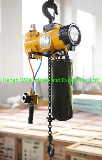 Composed by cable reel, chain, chain wheel, bearing, pendant/remote and other components, the air chain hoist has such characteristics as compact structure, light dead weight, easy installation and so on, which can be widely used in medicine produce, chemical, mechanical maintenance, sea drill and so on explosion environment. .