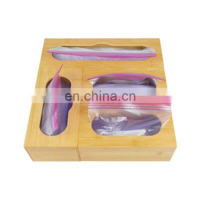 Bamboo Ziplock Bag Storage Organizer for Kitchen Drawer or Wall Food Storage Bag Organizer Dispenser
