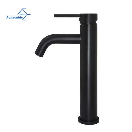 Aquacubic Black Tall Basin Sink Faucet Slim Bathroom Basin Water Mixer Water Brass Deck Mounted Tap Basin Crane Tap