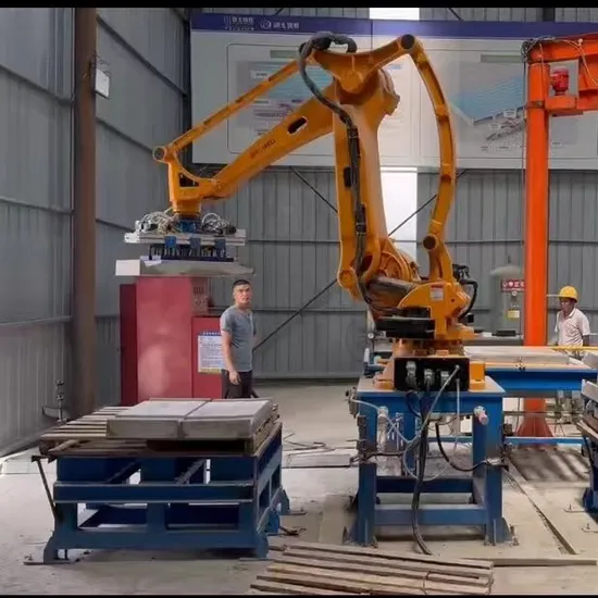 The qualified packaging bags are sent to the levelling machine through the slope conveyor to make the bag shape smooth. The bags arrive at the grasping roller table. After the manipulator detects the bags on the grasping roller table, it grabs the bags for turning and stacking, and the bags are placed according to the set running track to complete the palletizing process.