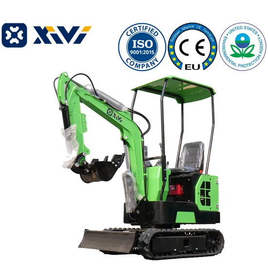 The XV12 Mini Excavator, a compact powerhouse with advanced hydraulic pilot controls and a comfortable operator's seat.