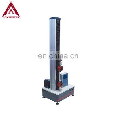 Product DescriptionAT441 Electronic Universal Testing Machine is used for tensile, compression, bending, tearing, peeling, bursting and other tests of a wide range of materials with different clamps. It is suitable for various metallic and non-metallic materials, such as rope, belt, silk, film, fabric, rubber, plastic, etc.StandardASTM D3787, 4964,5034, 5035ASTM E9-89aISO13937, ISO 5081, ISO6892-1DIN 53859, DIN 53858BS3320, BS4303, BS2576GB/T 3923.1, GB/T 3917JIS L1096SpecificationModelAT441Load range0~100N (0~2000N, 0~5000N optional)Accuracy gradeGrade 1Test force range2%~100%Test force error<±1%Test force resolution1/300000 of max. test forceDeformation range2%~100%Deformation error<±1%Deformation resolution1/300000 of max. deformationDisplacement error<±1%Displacement resolution0.001mmTensile travel800mmTensile speed0.01mm/min~500mm/min, stepless adjustablePower supplyAC220V±10%, 50HzDimensions500mm×398mm×1505mm (L×W×H)Weight100kgDetails & Features★ Adopt CRE measurement mechanism, PLC control, automatic data processing, real-time determine and display test force and peak value, displacement, deformation, etc. Real-time display load-deformation, load-displacement and other test curves, these curves can switch an time. It is also very convenient to enlarge and reduce the test curves.★ With over-load, over-current, over-voltage, upper and lower limit of displacement, emergency stop and other protection function.★ With built-in controller★ After test, it can quickly return to initial position manually or automatically.★ Electric control circuit conforms to international standard to ensure stability of controller and accuracy of test data.★ With network interface to acquire data transmission, storage, printing and network transfer printing.★ Different load range can be optional for this machine, 5000N max.★ Various clamps can be optional to perform different test standards.Our CompanyHistorySince 1982 with more than 20 years’ experienceWarrantyTwo Year Warranty for whole productTrainingVideo and user manual for trainingOnsite serviceInstallation and training service is availableTesting serviceFree sample testing before order is availableLead time15 working days lead time for most productPacking & DeliveryPackagingPackaging Details1. The equipment is covered with film is protect it from water vapour during the trip. 2. The box is filled with foam to protect the equipment from impact. 3. Exported wooden box made from plywood, don't need fumigated. PaymentPayment TermT/TEXW30% T/T in advance, paid the balance before shipmentFOBCFR(C&F)30% T/T in advance, paid the balance against copy of B/LCIFL/CL/C amount above 50,000 usd, we can accept L/C at sightWest UnionAmount lower than 5000usdWest UnionDelivery Time7~10days after receiving payment for one containerContacting Us