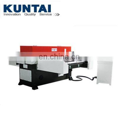 Double connecting rod balance and hydraulic drive. All moving parts have auto lubricating system, prolonging the machine service life and enhancing cutting precision.The upper pressing board comes down quickly and when it is near the cutting mould, it will slow down automatically. Thus, the upper side and the lower side of the materials will hardly have any size difference.The specially designed machine structure avoids oil leakage.Flywheel energy storage tech helps realize high pressure cutting, saving power. The oil temp will not rise.Stroke setting mechanism can easily and precisely set the cutting height according to different cutting moulds. Main sealing elements are made in Germany. Key hydraulic parts and electrical appliances are imported and have long service life.After high frequency quenching, the excircle surface of cylinder rod will be hard chrome plated, prolonging the service life of the machine.The hydraulic system adopts auto oil adding speed enhancing cylinder. When working, it lowers rapidly and the hydraulic pump is in the state of unloading. It produces less heat and can work continuously for a long time.Machine Pictures