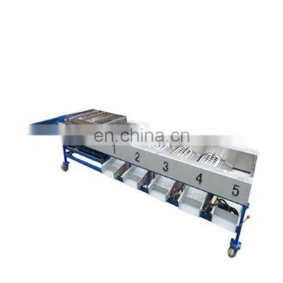 ApplicationThis fruit sorting machine is mainly used for apple, pear, dragon fruit, orange, peach, kiwi fruit and guava, etc round shapes of fruit and vegetable sorting and grading. This machine is to sort the fruit by fruit weight.Advantages:1.Reasonable structure design, high sorting speed, low broken rate, small weighting error and high degree of accuracy. The weighting sorting performance has reached the international standard.2.This sorting machine can be moveable. It can not only work in the fruit garden, but also in the town factory. Thus it can reduce the fruit broken caused by fruit carrying.Grading Machine for apple,orange,onion,potato,tomato ,cheery and so on.This electronic fruit grader is efficient and precise. It's widely used for grading apples, pears,persimmons,onions,lemons,mangos,pomelo,jujube,and other round fruits.FUNCTION* Popular grade level of orange grading machine is 3-6 levels.* Grading size can be adjusted by sorting machine.* Carbon steel and stainless steel machine body are available for us.* We could design the working flow according to customer production needs.PRODUCT SPECIFICATIONSSeparation grade4-12Max weight to be sorted1500gMin weight to be sorted15gPrecision±3gThroughput500-12000pcs/hourTotal power3KWPower supplyAC380220/240/110, 50/60HZ Product Photos