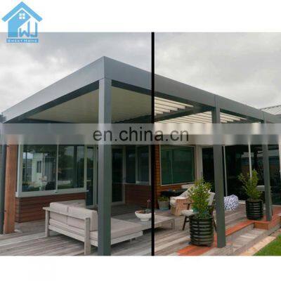 Product DescriptionOur this aluminum pergola is 100% water proof with internal gutter .We can do electric and manual control.The post size of our this aluminum pergola is 150x150x3mm which is very strong to hold the top louver roof system .We can custom any sizes for the aluminum pergola and you can choose motorized and manual control way.As we have our own color cutsomized work shop , we can custom any colors base on RAL color card .For the other accessories like side curtains/blind , LED lights ,heater ,wind/rain sensor , fan and so on , we cal also provide. And we can provide very detailed installation videos, so don't worry about the installation .Welcome to contact and inquiry .Product Name:Aluminium Electric PergolaPost size:150x150x3mm thickness aluminum profile very strong for aluminum pergola systemWidth Range:2.5m - 13.5mElectric Motor's Voltage:110V Or 230VRemote Control:1 Channel or 5 ChannelGutter:Complete with Gutter and Rain Spout for Inbuilt PVC DownpipeLouvres Blade Size:150mm /200mm/ 265mm Aerofoil Type Available, Waterproof Eeffictive DesignPivot Bolt:Highly Durable Aluminum with PP Blade End CapsOther Componentries:Heavy-duty internal fittings, Plastic bush, SS Grade Stainless Steel ScrewsTypical Finishes:Durable Powdercoated for Exterior ApplicationColors Options:We have our own color customized factory , we can custom any colors for youMotor Certification:TUV,CE,SGSHow the water come out : Our aluminum pergola with internal gutter system , the rain/water will come out from the bottom of post,like below picture .ProjectFactory and Package5 Stars review :FAQQ1:How to guarantee the quality of the products?We have our own QC team to control the products quality for all our clients'orders before loading.Q2:How long does it take to install a louvres roof /pergola?It depends on te skills,help and tools, usual 2-3 workers will finish the installation 50m 2 in one day.Q3:It is the louvre roof /pergola rain proof?Yes,the normal weather cnditions,even heavily rain,the roof /pergola will not let in rain.Q4:How does the rain sensor work?The control system normally programmed to close the louvres when rain is detected.Q5:Are louvres roof/pergola energy efficient?The adjustable louvres blade help to reduce heating and controlling the amountof direct sunlight.Q6:Can the louvres roof/pergola used next to the sea?All accessories in aluminium alloy,stainless steel and brass to avoid any rust and corrosion.Q7:How we do business?Take care of your prducts and serve your needs.Contact us by E-mail or by phone. Other Main Products