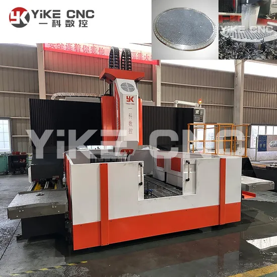 The machine is mainly composed of bed, worktable, moving gantry, vertical ram type power head, hydraulic system, pneumatic system, cooling system, centralized lubrication system, electrical control system and automatic chip removal system. For this series machine, wortbale and gantry they are separately, gantry moving on two bases, this kind struture greatly improve the processing stability and precision, high load-bearing capacity. High quality grey iron CASTING WORKTABLE. The machine bed and worktable are made of high-quality gray iron (HT300), and the stress is removed by two tempering heat treatments. In order to eliminate the resonance generated in the drilling process and prolong the service life of the alloy drill, the independent form of the bed and the worktable is adopted. Automatic chip removal and circulation cooling system reduce the nonproductive time and labor intensity. The operator only need to load and unload work piece and change the drills. Machine use Taiwan BT50 spindle, internal cooling type, high accuracy spindle. It can use carbide drill. Machine also adopts pneumatic tools cylinder, to make tools change more easier. The big power main spindle motor is driven by servo synchronization belt. This is can bear big scope of rotation speed. This CNC drilling machine is designed according to the workpiece features and precision requirements; it has compact form and is flexible, it meets the processing requirements better. No matter the holes are arranged as circle or straight line, it can finish the work quickly and accurately. Therefore, this machine is cost-effective choice. Product Parameters