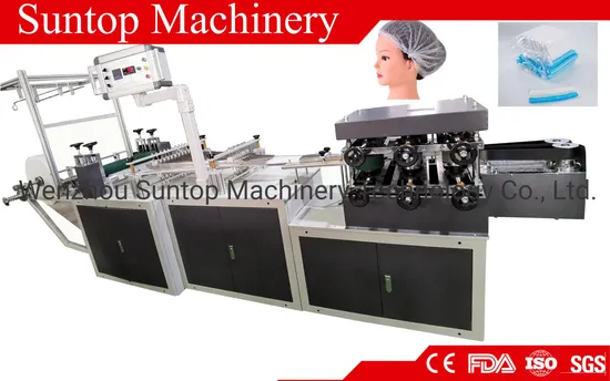 Bouffant Cap Machine Medical Nursing Cap PE Head Cover Non-Woven PP Mop Cap Strip Shower Cap Disposable Cap Making Machine. It adopts ultrasonic heat sealing method, frequency conversion speed regulation, and produces non-woven materials and plastic film materials. The disposable dust-proof non-woven strip caps are integrated into the finished product from feeding to finished products. You just feeding the material (Non-woven or PE Plastic film and rubber band ),then you will get final product.