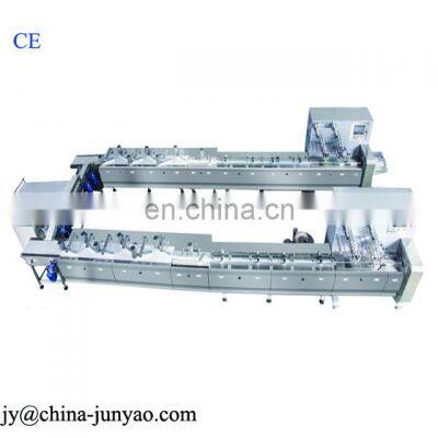 Product DescriptionProduct ApplicationIt is applied for the pillow packing of products with easy broken surface,such as chocolate,wafer,puffing food,rice cake,cake,Swiss roll,caramel treats,nougat,candy floss and other types of candies or enrobing products.MAIN TECHINICAL PARAMETERPacking Speed50-1000*2 pcs/minProduct DimensionsAccording to real product sizeTotal Power9.5kwOutside Dimensions8900mm*1180mm*1786mm(L*W*H)Net Weight7000kgPower Source400V;50HZ,3phase(can customized)Main Features1. NINE Servo motors, touch screen control. 2. Automatic feeding for the complete packing line.3. Automatic belt speed adjustment through frequency converter, every conveyor belt is individual.4. Conveyor belt automatic deviation device through cylinder and photocell.5. Automatic temperature cooling through the air condition with two fans, air cooling or water cooling available.6 .Double paper rollers, automatic paper splicer device (paper splicer device designed according to Germany Bosch)CertificationsDetailed ImagesAll the feeding belt are individual speed control by individual frequency converters, it can adjust the speed in the touch screen conveniently. easy take off and installation.The belt rollers use the rubber materials in case the belt slip.photoelectric tracking system.Belt Discharging ConvenientlyThe both sides install the teflon. It can reduce the friction with the products.The machine equips with the fan to position the product in the hole belt precisely.Water cooling for the beltDouble Paper rollers structure and fast automatic paper splicer designed according to Germany Bosch as below.Double Layers Electrical Cabinets (Mechanical and Electrical parts are separated).Our Service1.One year guarantee for the quality, if components are damaged naturally, we will replace it freely. If Manually damaged, the clientsResponse for the costs.vide the complete installation, debugging, technology support and staff training.3.permanent accessory parts supply only to our clients for competitive price, quick response for the after-sales service.Packing & DeliveryPayment Terms:40% T/T in Advanced, the balance should be paid before delivery.Delivery time: 30 days after the deposit.Package: Seaworthy Wooden Case.Shipping:By Sea.