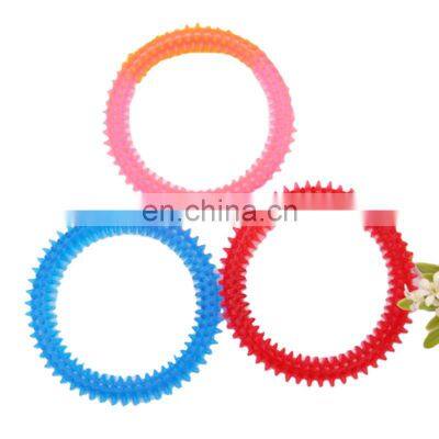 1.TPR new bite resistant super bite resistant PVC big thorn ring dog pet molar toy quality toy wholesale2. specification of pet toy Product information Specification Product categories Chew toysMartialPVCGrade topSize 15cmWeight 77gQuantity per carton 240Carton size 60*35*60 3.Images of pet toy Our Services 1.What is your MOQ?Our MOQ is 1 Pieces, welcome inquiry. 2.How about your shipping? We can ship according to your requirements, low quantity can be send by express, air, large quantity can be by sea or train. It is up to buyer's requirement, we can discuss for the detail. 3.Can I use my owen logo or use our desin?Yes, but this need to be discuss further, we can print your log if you are middle man.4.What is your payment terms? We accept all the payment terms that can asure buyers' and sellers' satification.Different payment against different clients. If you have any other inquiries, welcome to contact by online trade manger or other ways .
