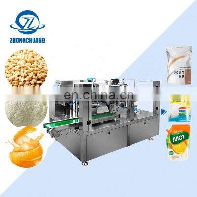 Product Description Model No.ZC-D200Product Namemini doypack baby food spout pouch spoon packing machine granuleFunction Bag-feeding, Filling, Wrapping, Sealing Voltage380V 50/60hzPacking Speed 25-60 bags /minsPacking Bag SizeL: 100-350mmW : 60-200mmApplicable IndustryFood, Drink,Commodity, Medical, Chemical etcSuitable Bag TypeStand-up pouch, Zipper Bag, Film, M pouch etcDimension (L*W*H)5258*3610*3655mmMachine Surface material #304-Stainless steel Gross Weight 1300KGAir Compressed air consemed≤0.6m³ / minAccuracy ±1g (≤100g) / ± 1%( >100g) according to materialWarranty 1 year Customer Evaluation Company Information