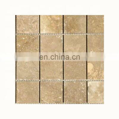 Product DescriptionHoned surface travertine stone mosaic tiles1. yellow travertine mosaic for bathroom floor and wall 2. Material : yellow travertine, beige travertine, travertino3. Finish : Honed 4. Use : inner wall and floor 5. Travertine mosaic pattern : square , Hexagon, Octagon,Penny round, Hand clipped 6. Travertine mosaic tiles packing : Carton box + Film protection+ Wooden crate Or plywood pallet or plywood crate Travertine mosaic is very good for bathroom wall , kitchen backsplash , kitchen wall , kitchen floor . Marble mosaic pattern size canbe 24x24, 12x12 and various sizes according to request.Travertine stone mosaic tiles MaterialYellow travertine, beige travertine Chip Size10x10mm(3/8"x3/8"),15x15mm(5/8"x5/8"),20x20mm(3/4"x3/4"),25x25mm(1"x1"),30x30mm(1 1/4"x1 1/4") and etcUseInner wall decorationMore marble mosaic tiles More travertine stone productsKitchen and bathroom projectRich experience in supply granite and marble countertops for various kitchen and bathroom project : Apartment, Hotel, Villa etc.Paving and landscape Own quarry and long-term cooperation quarry for sure supply granite, basalt ,slate for big outdoor project . Own profesional factory specialize in paving stone and landscaping stone Granite tiles and marble tiles for floor and wallSupply high quality granite tiles and marble tiles for inner floor, inner wall panels , inner wall decoration panels and exterior wall.
