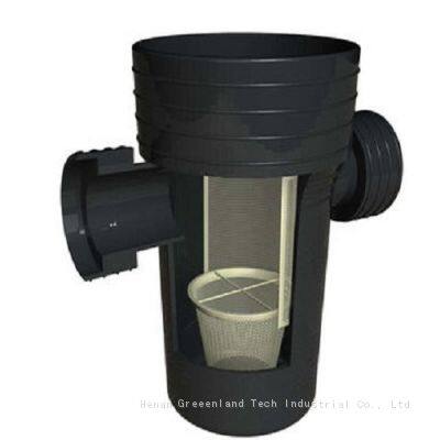 This product shell material for PE material using a one-time injection molding and become, built-in 304 stainless steel basket and filter, can effectively intercept the larger solid pollutants, so as to protect the normal operation of the late equipment. When cleaning, just pull up the handle on the ground can be convenient to clean up the pollutants generated by filtration.