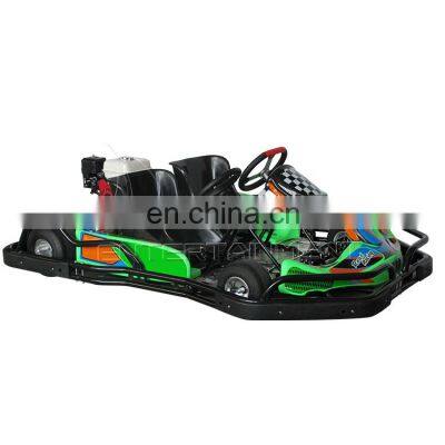High quality 2 seats electric go kart for sale Product Description Racing go karts is a popular amusement rides car for High speed kids racing go karting adult electric racing go kart for sale Advantage:*Cervical protection bracket*Comes assembled, simply set-up*Adjustable seat with secure seatbelt system*Steel wheels with off- road tires *Easy to reach foot pedals *Colorful flame graphics , frame and number plate Engine(Lifan Brand)270CC,4STOKE, 9HP WITH WET CLUTCH SYSTEM,New steel safety bumper,with rear cover ,seat cushion Max Speed:60-80KM/HMAX LOAD:200Kg Frame:STEEL TUBE BRAKE TYPE:HYDRAULIC BRAKE BRAKE DISTANCE:1.5m TRANSMISSION:CHAIN-DRIVEN START-UP:MANUAL START-UP Equipment Size: 188*133*53cm Packing Size170X110X52CM