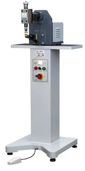This machine is used for pounding and ironing the throat and joint material in uppers.